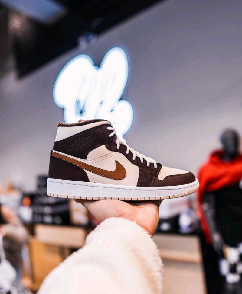 Nikee Air jordan 1 Mid Se Brown Basalt Oatmeal Semi Ua